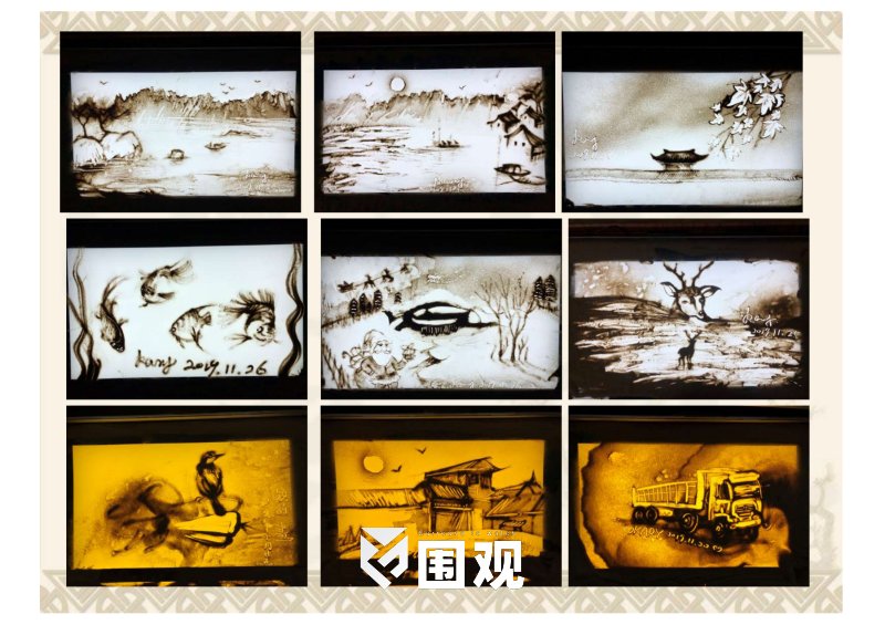 为满足更多元化,更创新的时代步伐,除了沙画以外,光影画,水影画,金粉画等不同形式的画种也逐渐推出。