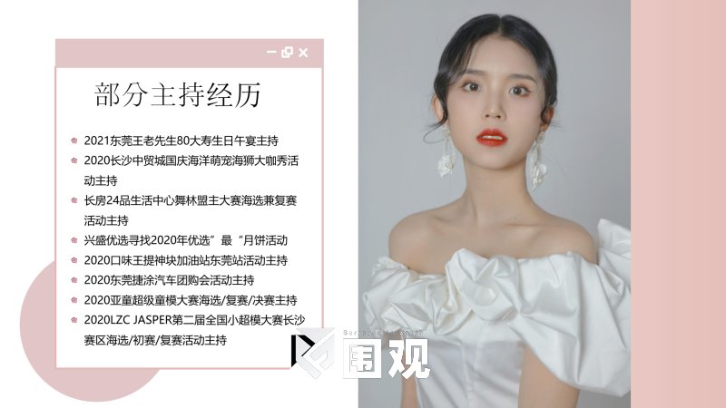 播音主持专业本科毕业,普通话标准,富有亲和力,有较强的应变能力和控场能力
