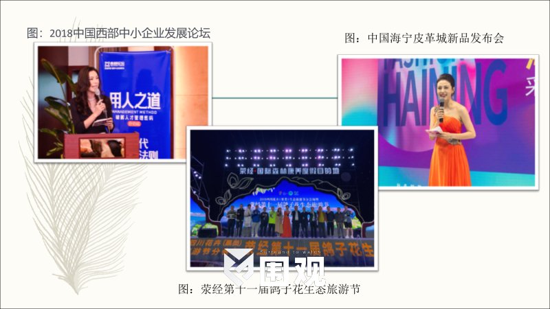 成都电视台主持人 主持风格端庄不失活泼,幽默不失典雅,灵活机智,深受业内及观众好评。