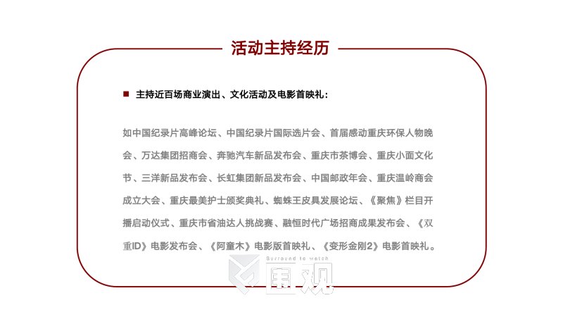 现主持栏目:《教育第一线》,每周一、周二晚7:34重庆电视台科教频道首播。