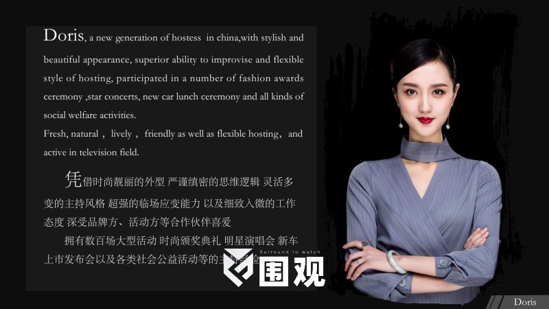美国洛杉矶电视台华人频道财经主播 香港卫视《映像》栏目主持人 凭借时尚靓丽的外型 严谨缜密的思维逻辑 灵活多变的主持风格 超强的临场应变能力 以及细致入微的工作态度 深受品牌方、活动方等合作伙伴喜爱 拥有数百场大型活动 时尚颁奖典礼 明星演唱会 新车上市发布会以及各类社会公益活动等的主持经验