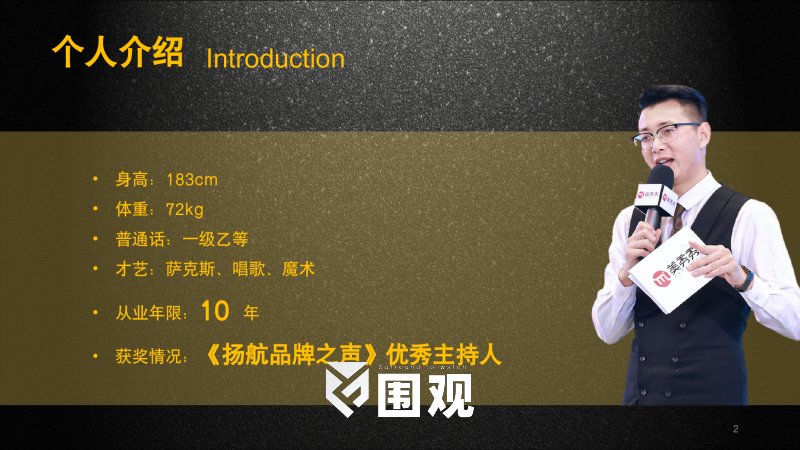 • 普通话:一级乙等 • 才艺:萨克斯、唱歌、魔术 • 从业年限:10 年 • 获奖情况:《扬航品牌之声》优秀主持人