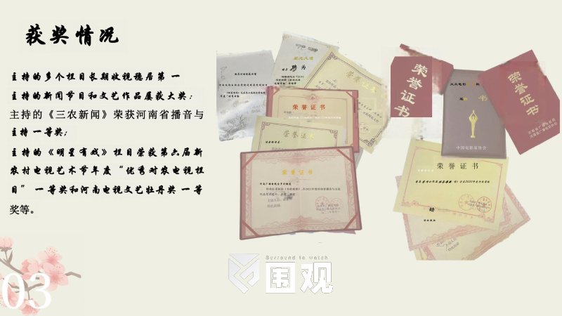 17年主持了近千场晚会、活动等,积累了众多观众粉丝和持续的高关注度,主持经验丰富,控场能力强,亲切自然,知性大气,深受观众喜爱