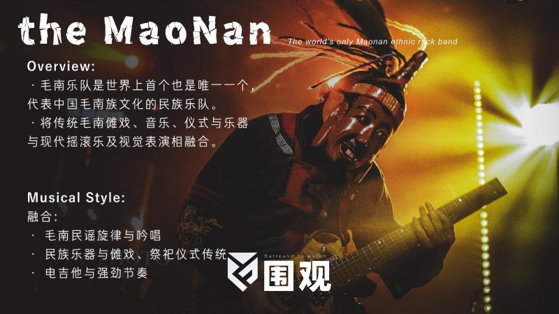 毛南乐队是世界上首个也是唯一一个代表中国毛南族文化的民族乐队。 将传统毛南健戏、音乐、仪式与乐器与现代摇滚乐及视觉表演相融合