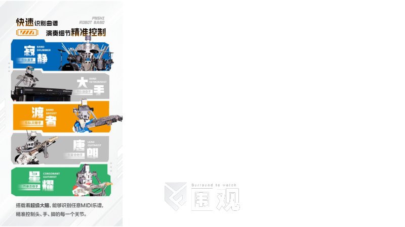 机器人乐队是融合了前沿科技与音乐艺术,机器人不仅可以真实演奏,还可以单跳、复合跳等烘气氛的复杂动作