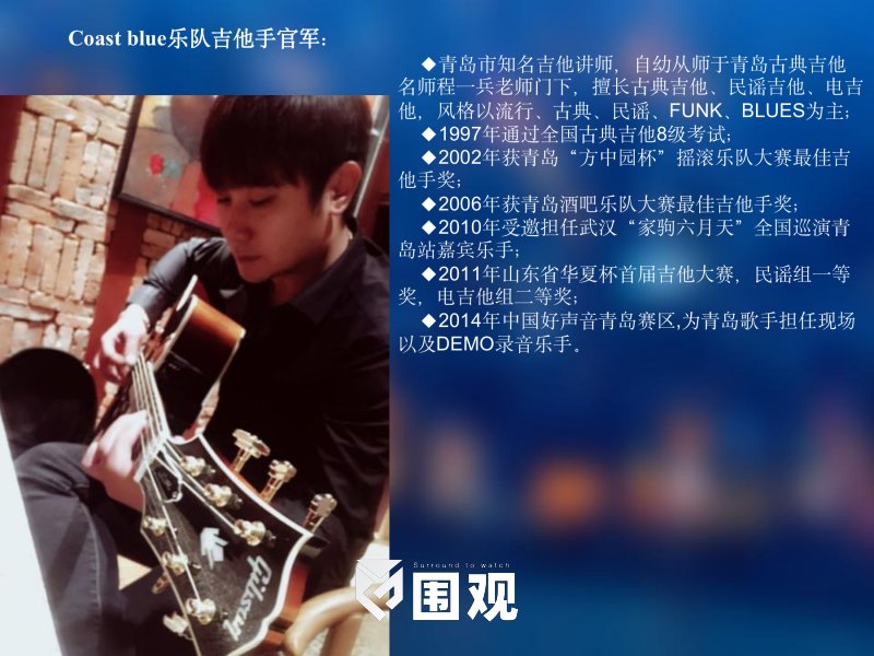 ◆参与各大音乐节: “魅力青岛摇滚之夜”、康师傅“冰力先锋”乐队大赛(嘉宾乐队)、青岛摇滚春晚、青岛首届百威音乐节、黄岛海洋音乐节、莱西市摇滚音乐节、青岛首届蛤蜊音乐节、青岛“好声音”音乐节、中欧国际城红人摇滚音乐节、beyond摇滚之夜黄贯中音乐会、多届青岛市国际啤酒节中心舞台等大型演出;