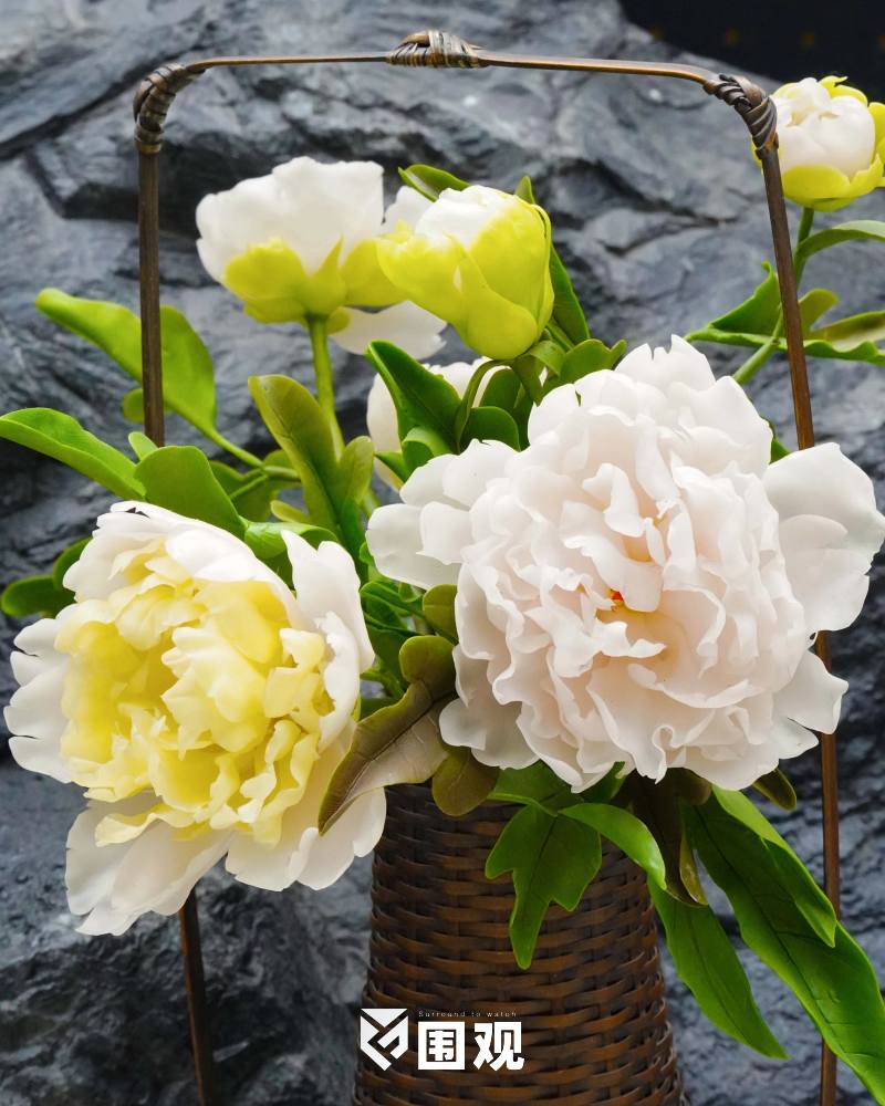 冷瓷是用冷瓷土纯手作花卉、自然风干硬化的工艺。每一道工序都需要自然风干硬化才能进行下一步骤,花瓣风干后呈现瓷玉般半透明质感,因此称其为冷瓷土。冷瓷土做的多肉植物表面可见粉状及绒毛状的肌理效果,自然天成。