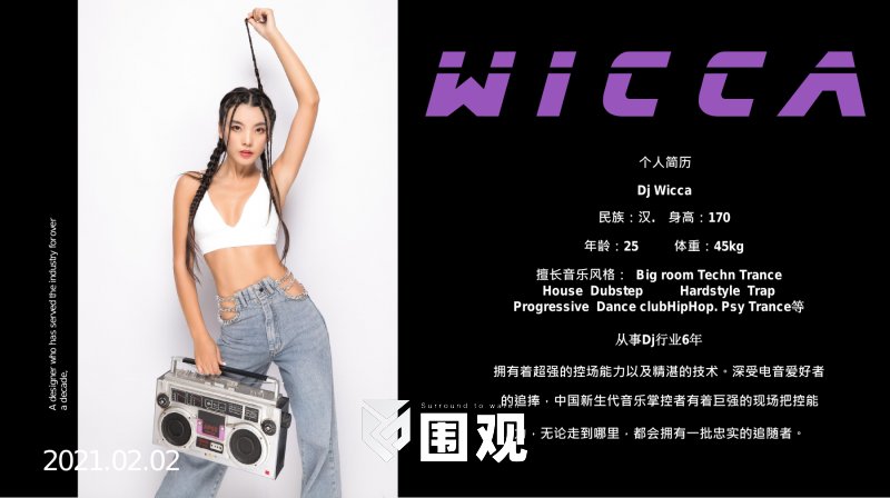 专业DJ 擅⻓⾳乐⻛格: Big room Techn Trance House Dubstep Hardstyle Trap Progressive Dance clubHipHop. Psy Trance等 从事Dj行业6年 拥有着超强的控场能⼒以及精湛的技术。深受电⾳爱好者 的追捧,中国新⽣代⾳乐掌控者有着巨强的现场把控能 ⼒,⽆论⾛到哪⾥,都会拥有⼀批忠实的追随者
