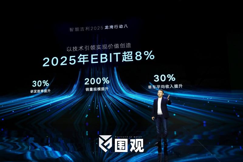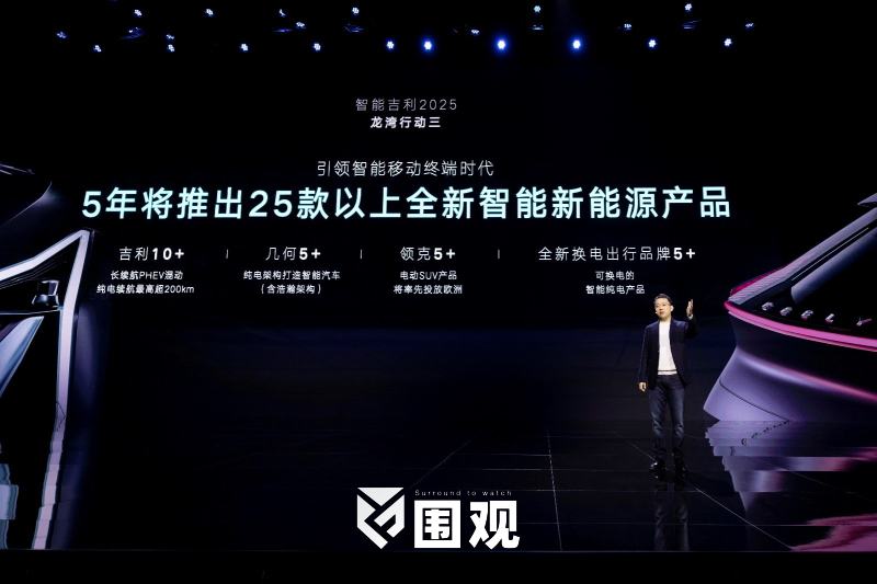 龙湾行动四:2025年度实现集团总销量365万辆,保持中国品牌市场占有率第一,赶超主流合资品牌。其中,极氪科技65万辆,吉利汽车集团300万辆。国内市场,吉利品牌130万辆;几何品牌30万辆;领克品牌60万辆;全新的科技换电出行品牌20万辆,集团整体海外销量60万辆。以极氪为引领,以雷神智擎混动技术为支撑,实现全面电气化,实现混动主流细分市场销量第一。到2025年,吉利汽车集团新能源销量将达到90万辆,占比30%。加上极氪品牌,吉利新能源的整体销量占比将超过40%。