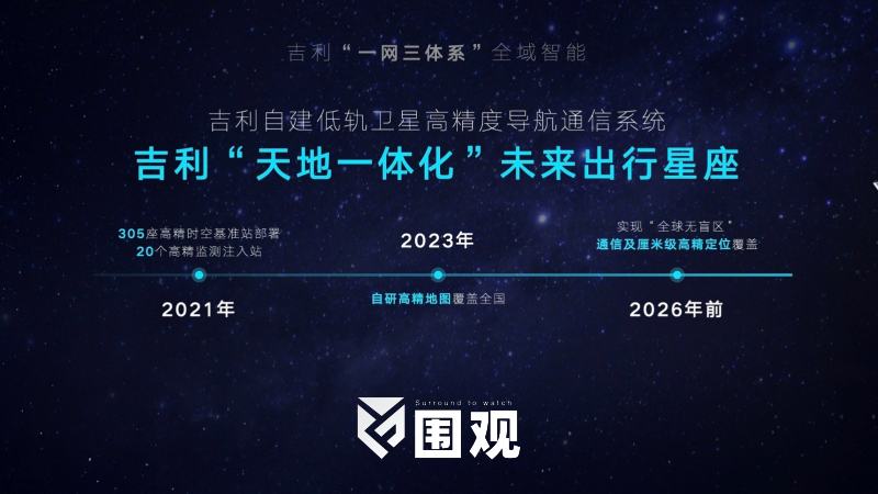 智能汽车软硬件体系下,数据才是用户体验进化的源动力。吉利自建的地轨卫星高精度导航系统目前已完成305座高精时空基准站的部署。计划2026年前,完成物联通信卫星及导航增强低轨星座组网,实现“全球无盲区”的通信及厘米级高精定位覆盖。由吉利测绘采集的高精地图,将在2023年覆盖全国,未来将持续为“智能吉利科技生态网”提供“天地一体”的数据和算法验证。