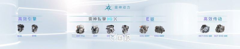 “雷神动力”产品矩阵包括雷神智擎Hi·X混动系统、高效传动、高效引擎以及新一代电驱装置“E驱”。其中,雷神智擎Hi·X作为世界级模块化智能混动平台,包含1.5TD/2.0TD混动专用发动机,以及DHT(1挡变速器)/DHT Pro(3挡变速器)混动专用变速器,支持A0~C级车型全覆盖,同时涵盖HEV、PHEV、REEV等多种混动技术。雷神智擎Hi·X拥有六大混动行业天花板级技术,成为世界级模块化智能混动平台,创下多个世界第一,在核心技术上全面超越日系混动。
