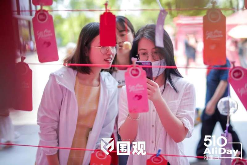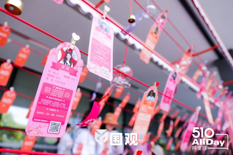阿里人会在桃花树上挂着心愿卡,扫描淘宝寻找缘分。相亲角可以寻找潜在的缘分,微风拂来风铃响。“购物车寻缘,远离塑料姻缘”,朋友圈可能会欺骗你,但购物车不会。