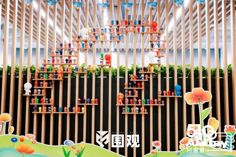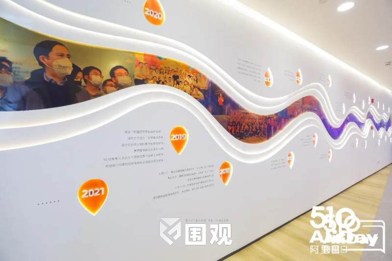 阿里小二会将提前录好的园区视屏播放给大家观看,将阿里日线下的布置一一说给大家。阿里小二在内网说给亲友们的话、阿里的年陈文化、今年特殊的大事记墙、阿里亲友书画展等。