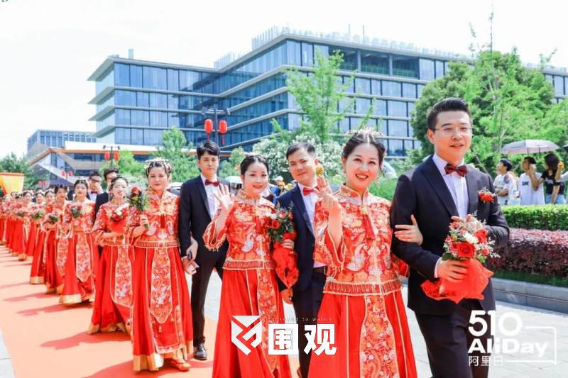 集体婚礼是每年最值得期待的阿里日的“传统节目”,102对新人参加了这场“爱在阿里”的特别仪式。这些新人有阿里双职工,也有非阿里双职工,有来自阿里生态圈的新人,也有公益时最长的新人。