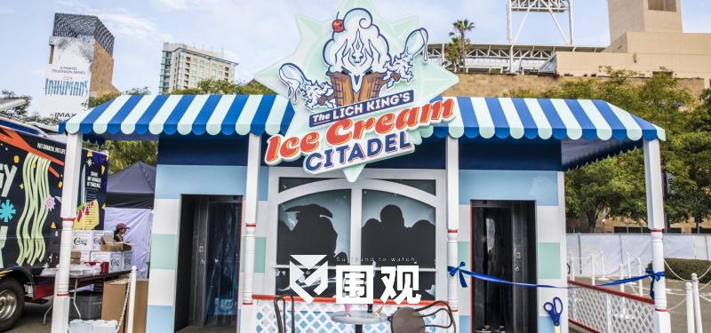 A custom facade was built around a walk-in freezer to create a frozen-over ice cream parlor. Nitrogen ice cream was served to those brave enough to enter the Ice Cream Citadel. Fans also got to take a photo next to the Lich King on his 8ft. throne!