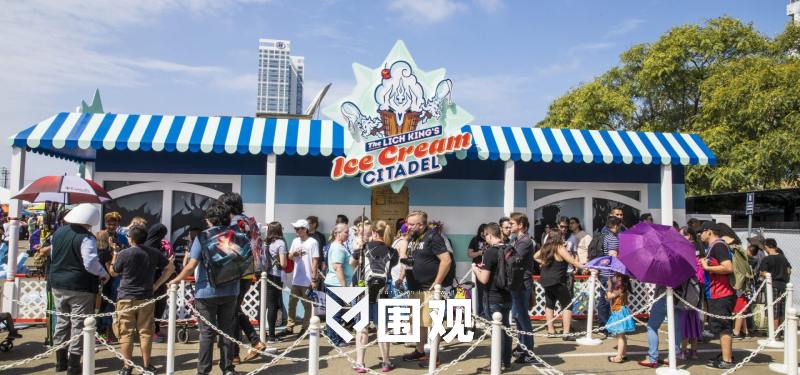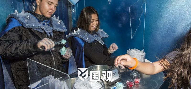 我们布置了可以自定义外观的在步入式冷库,建了一个冰淇淋店。向那些勇敢进入冰淇淋城堡的人们提供了氮气冰淇淋。粉丝们还必须在8英尺高的巫妖王旁边拍照。进击吧!冰封王座!