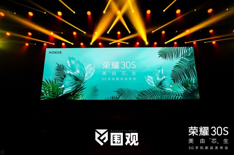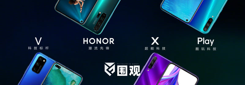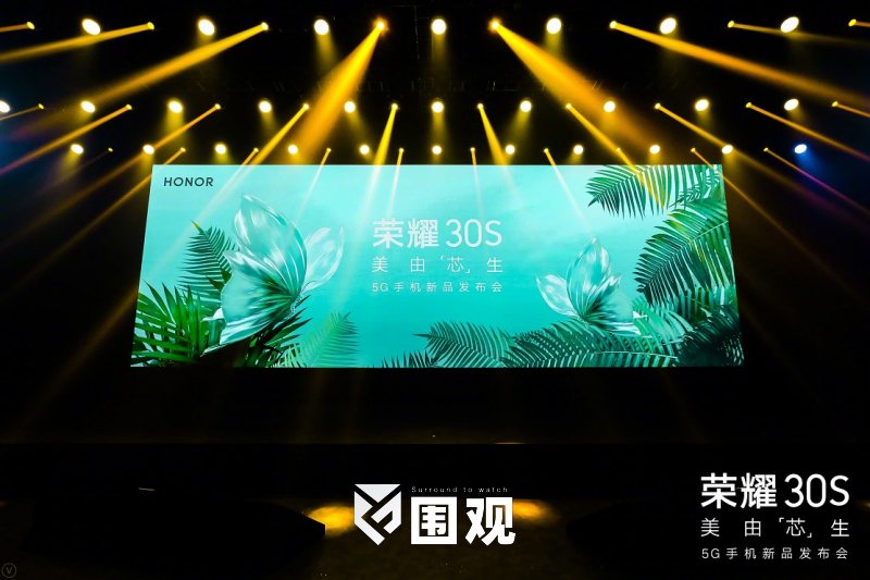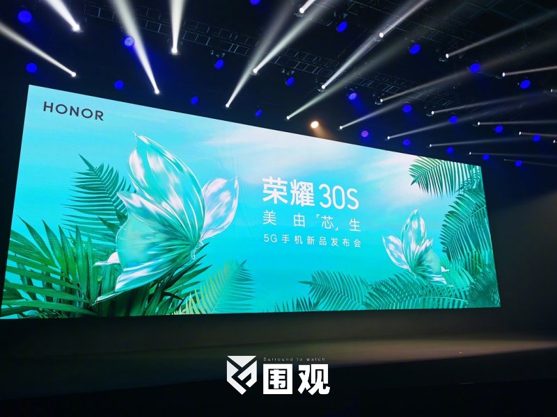 发布会准时开始!荣耀手机V、N、X、Play四大系列,V系列“科技”担当,X系列“品质”担当,Play深耕年轻用户层。今天的主角是荣耀数字系列,2020潮流先锋——荣耀30系列的首款5G手机!