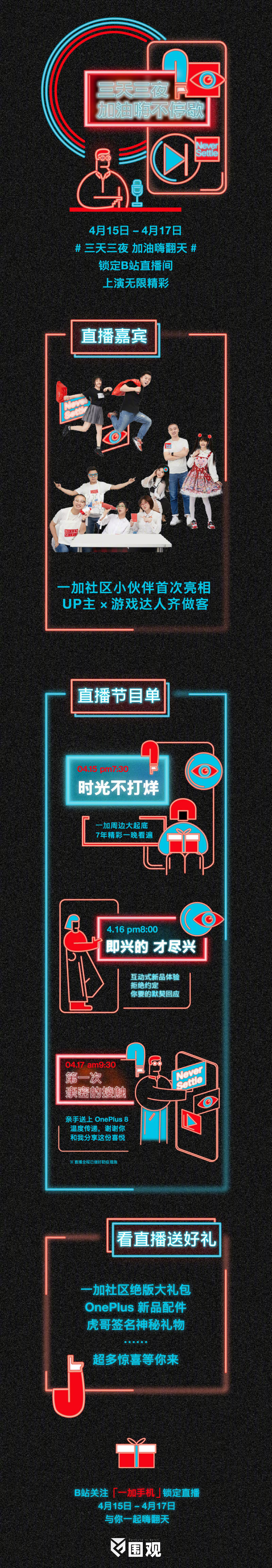 发布会以折叠式绿幕,打造了一个沉浸式的立体空间,结合裸眼3D的视觉特效,为线上观众带来绝佳的沉浸式观感体验。并非浮夸素材的堆砌,而是把握节奏适时将亮点最大化呈现,由内而外散发出一加品牌的高级质感。