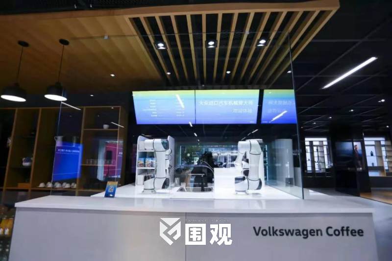 旨在打造成网红咖啡吧的餐饮区,有独具特色的自动机械臂“咖啡师”调制咖啡,还有德式啤酒和香肠提供给客户