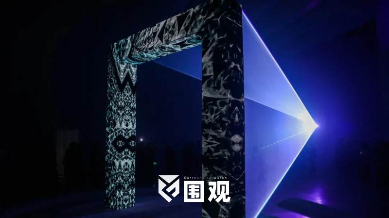为了展现数据的生命感,Blackbow与E.I.art工程师Fallen运用多种视听上的数据算法如分形、Voronoi图、自组织噪声、Delaunay三角剖、Cosmic Force等。让生成的门体影像借由AI演算与现场音乐和激光形成相互感知的氛围情绪。由毛亮老师制作的背景音乐,瞬间便将人拉入充满神秘而未知气息的氛围中。