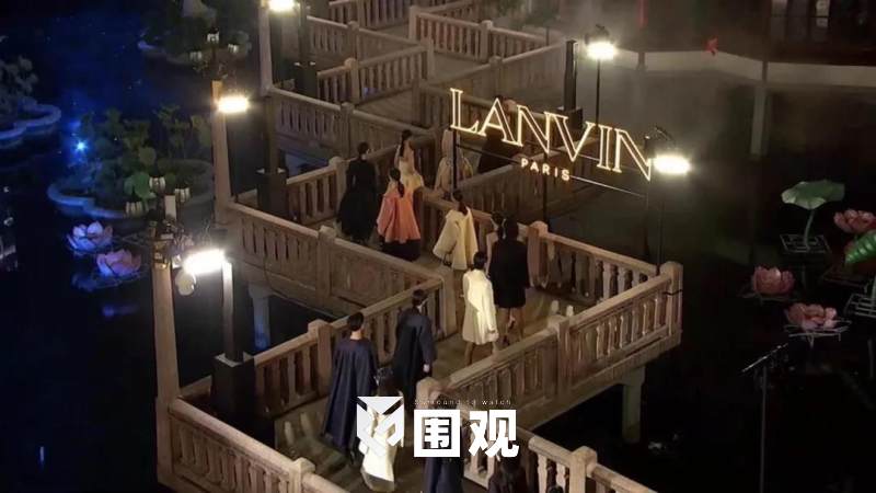 The block squares, lanes, and high-altitude areas of Yuyuan Garden shopping area was open, forming a stage with interlaced light and shadows. The Chinese elements that can be seen everywhere in the show area, such as lotus ponds, lanterns, plaques, Guanyin statues and etc, which collided with LANVIN, the French romantic elegance brand a different visual spark.