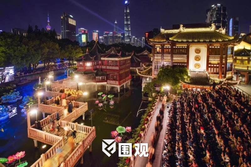 After the show, the intangible cultural heritage lights on Ninghui Road led guests into the performance area, with rickshaws full of Shanghai's historical memories were parked on the side of the road. The high-altitude stage of Yuyuan Garden-Hailiyuan transformed into a party area. With electronic rhythms and skateboarding performances pushed the atmosphere to new heights.