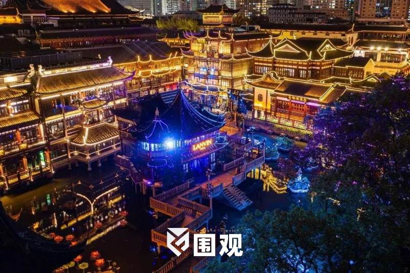 夜幕降临,钟灵毓秀的豫园被装点上各色华丽的灯光,楼阁的边沿和翘角上闪耀着金色的光芒,在周围高楼林立的建筑物中,显得更加夺目与优雅,亭台楼阁,小桥流水,灯火辉煌,仿佛在讲述着豫园全新的故事。