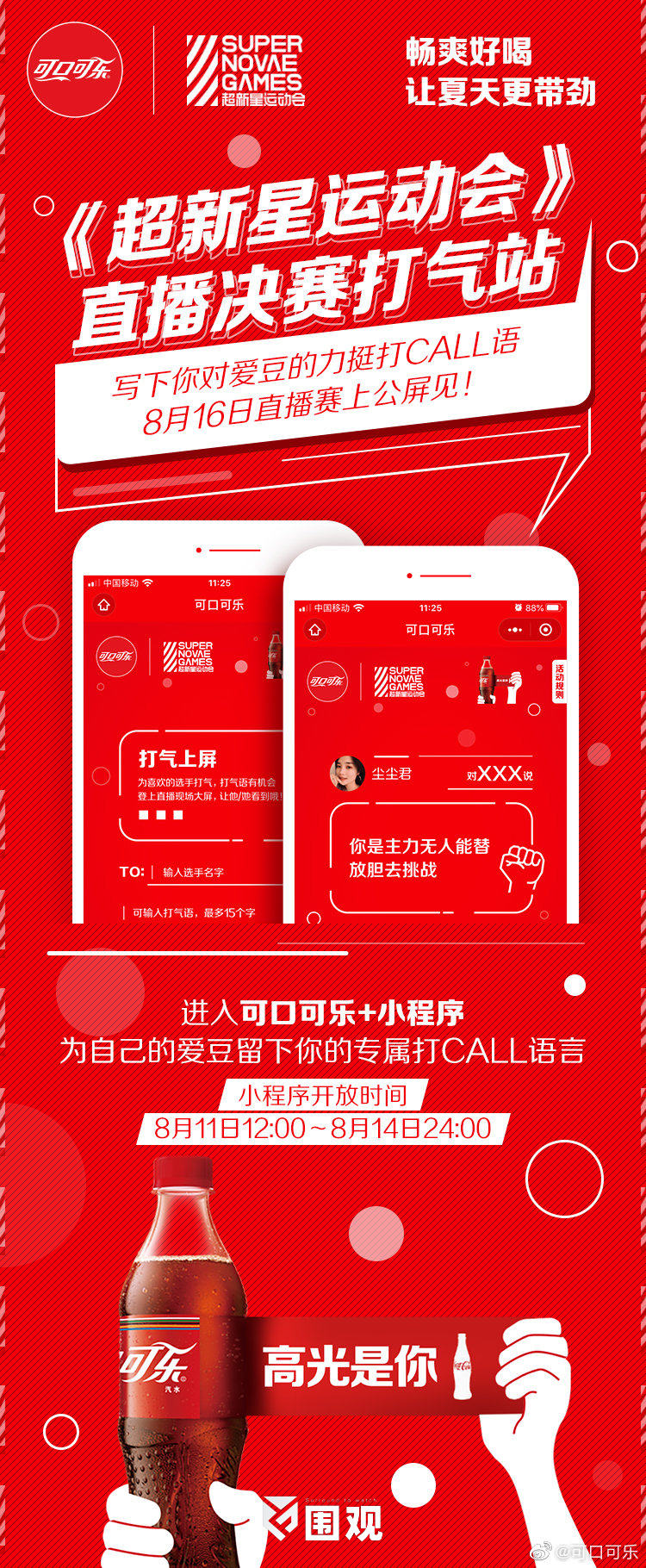 使用“可口可乐+”小程序可以为爱豆写下打Call语