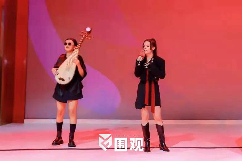 歌手及演员Annie唐伯虎与裁缝铺乐队表演