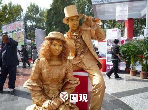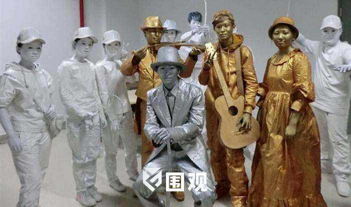 人体雕塑就是把表演者全身装扮成类似于真实雕箠的色彩(如金色等)然后利用人可以活动的方式进行肢体语言展示艺术雕塑的造型,人体会在一段时间变换不同造型(可以是一个人,也可以是几个人一起组织成的-个意群)给参观者一种奇特和神秘的感受。它是近现代西方行为艺术学家创作的-种新兴的艺术表现形式。这种形式在国外和中国的-些大型城市已经受到广泛的好评和欢迎。