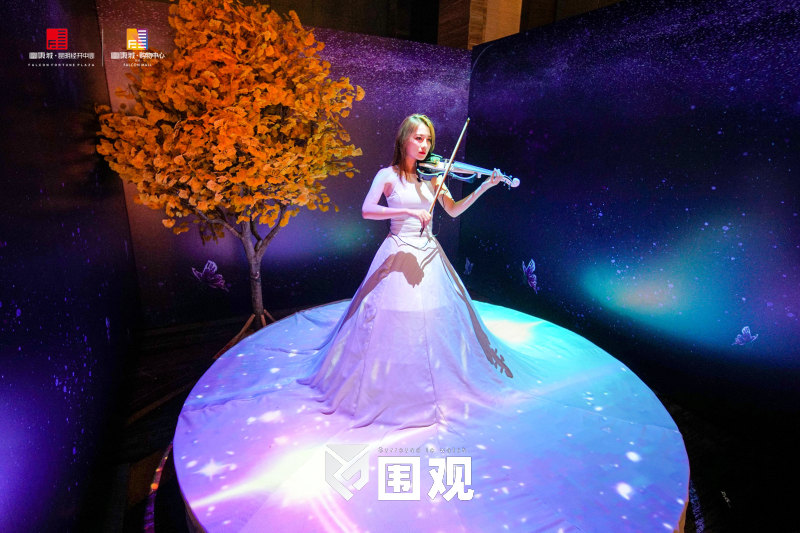 歌手/小提琴身穿洁白巨型拖地长裙,在巨大的舞台, 运用全息投影技术,结合现场光、影与音乐的 完美映衬下,变幻出闪耀着五彩缤纷、绚烂夺 目的特效裙子。让演唱者散发出一种诱人魅力! 宛如灰姑娘的魔法之神与宇宙、星辰、云彩之 中,舞台演出效果绝对惊艳全场!
