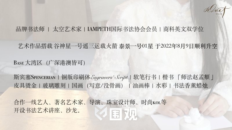 品牌书法师 | 太空艺术家|IAMPETH国际书法协会会员|商科英文双学位