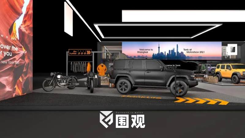 2021年汽车市场,坦克300可以说是当之无愧的网红车型。在服务长城汽车WEY品牌多年后,我们很荣幸的参与了全新坦克品牌的展台设计。由于是全新品牌首次亮相,展台风格,整体调性,设计元素都等同于零开始,这就让我们的考验与脑洞都拥有了巨大的空间。