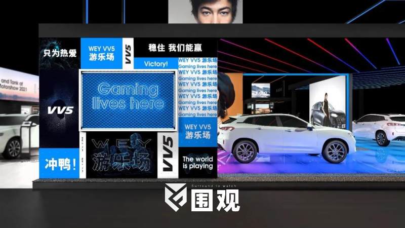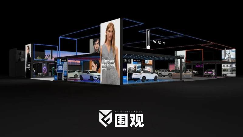 顶部灯带以品牌色区分,搭配差异化巨型LED画面。