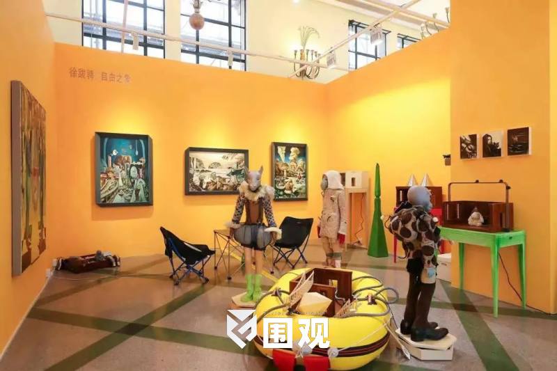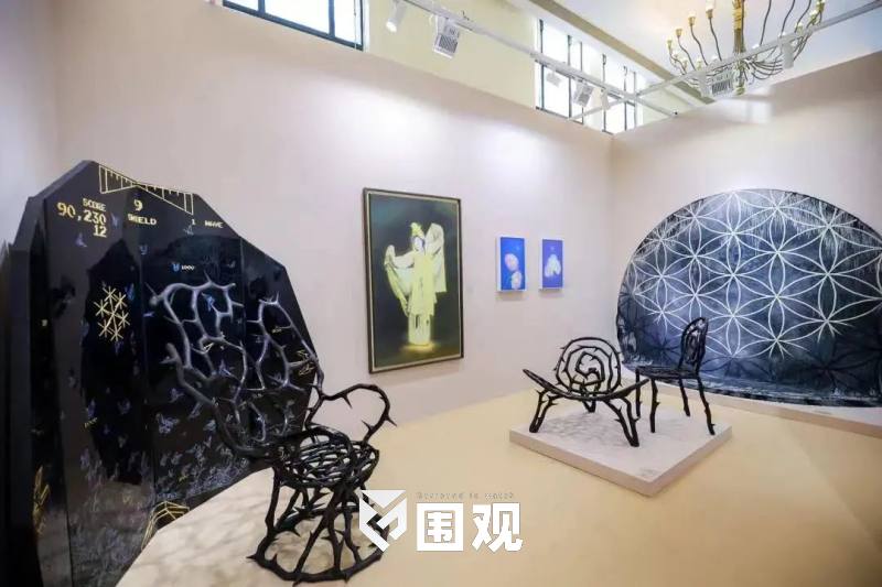 本届 ART021 在西馆入口首先为大家带来艺术家张占占与 The Smurfs 合作呈现的雕塑,同时在不远处摆放着艺术家陈瑞麟的三件套装置 HAHALULU,色彩鲜艳活泼,为观众带来抢眼又俏皮的视觉体验。此外,ART021 有幸再次迎来著名演员兼青年艺术家谭卓的跨界呈现,装置《下午茶》在序馆入口等候大家驻足。