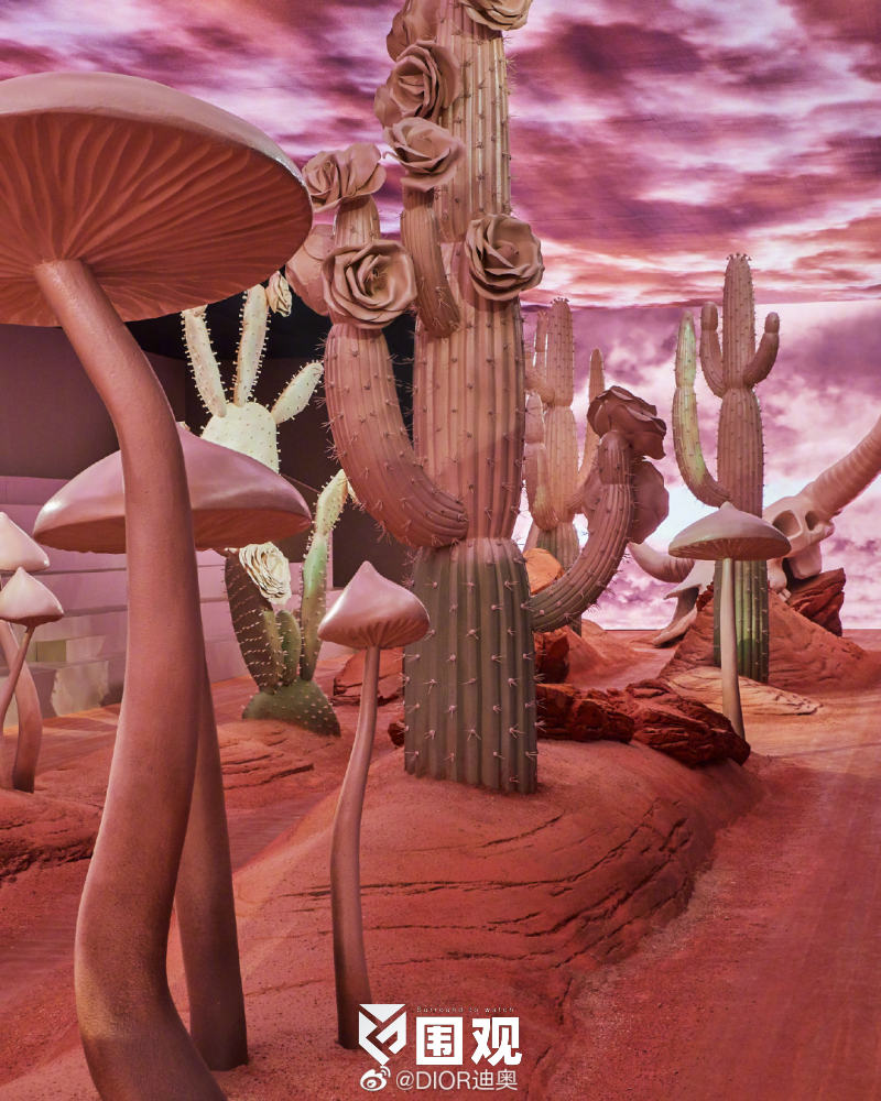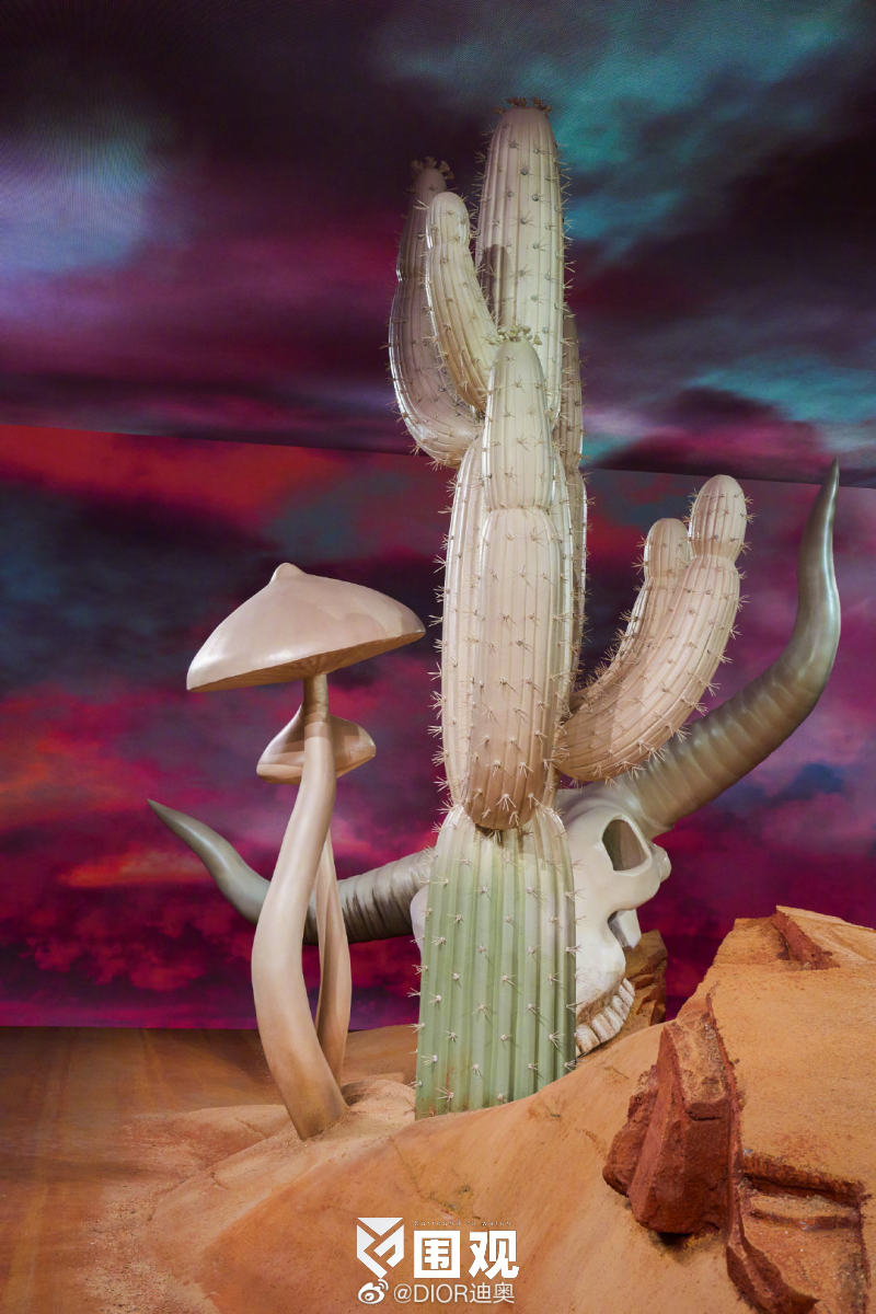 本次秀场经过精心设计,将迪奥先生童年的玫瑰园幻化为仙人掌花园,亦契合了特拉维斯•斯科特(TRAVIS SCOTT)在休斯顿的成长经历。当代艺术家乔治•康多(GEORGE CONDO)亦为发布秀打造一系列独一无二的艺术作品。这些作品将在大秀结束后进行拍卖,所得款项将以奖学金形式为年轻创意人才提供支持。