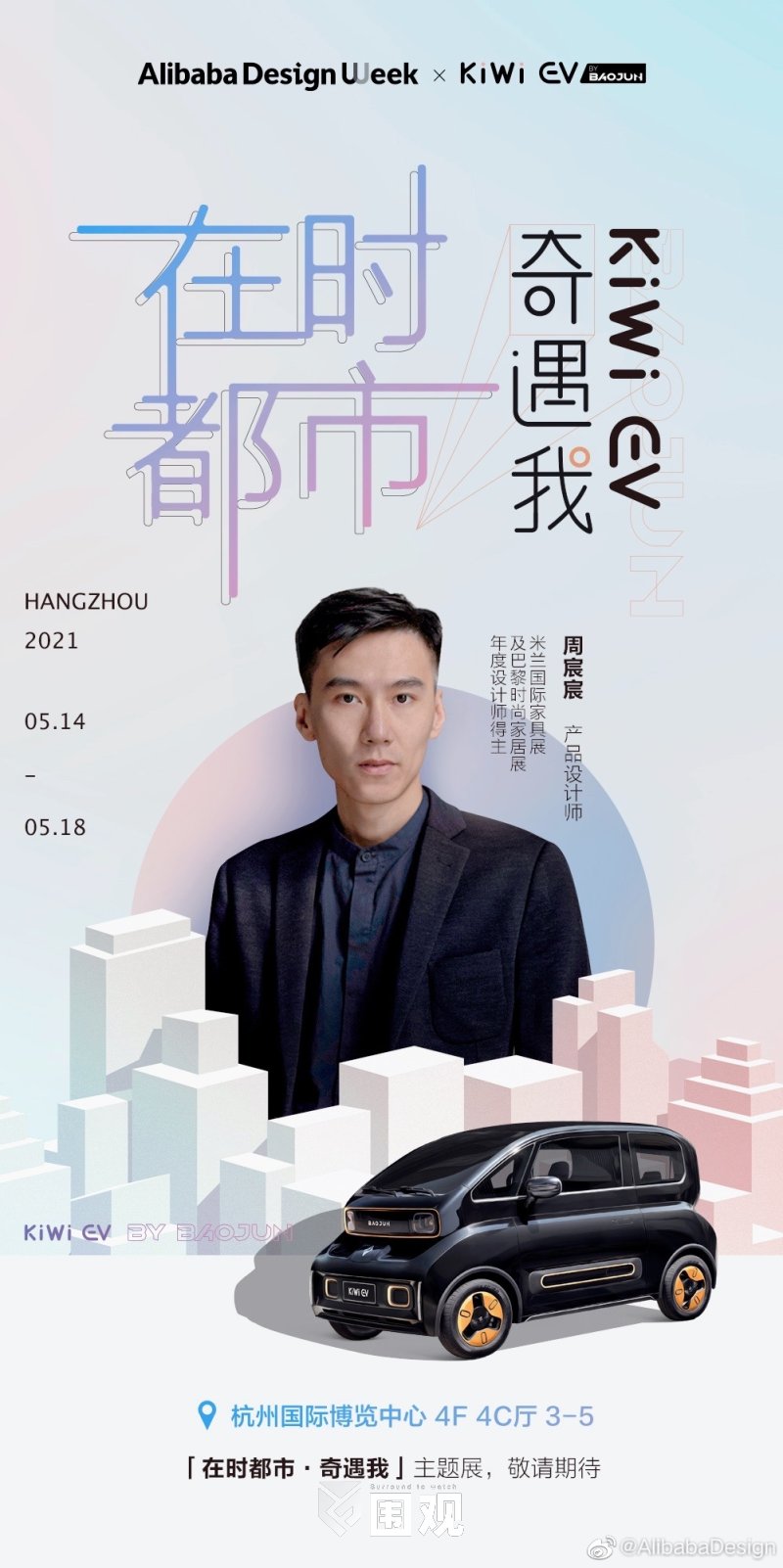 当时尚圈新星新宝骏汽车奇遇新锐米兰国际家具展及巴黎时尚家具展年度设计师得主周宸宸FrankChou,将会碰撞出怎样的灵感火花?5月14日-18日,来#阿里巴巴设计周##KiWi EV#「在时都市·奇遇我 」艺术展,奇遇摩登设计,与未来对话、与世界“奇遇“!