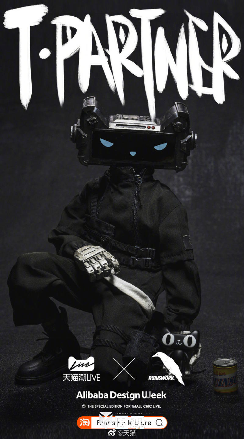 天猫品牌设计团队携手玩具人@ruinswork 废墟,为#天猫潮Live#爱宠当潮创作了代号「T-partner」的12寸潮流玩偶。T-partner以天猫和人形为基础,将人和宠物的概念融合成一种新形态「伙伴」,即将在5月14日开幕的#阿里巴巴设计周#现场首发。