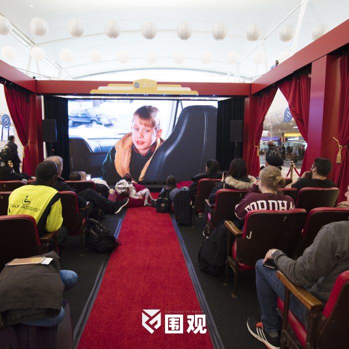 在每年最繁忙的一天(感恩节之前的星期三),为在肯尼迪国际机场的旅客,提供一个移动影院,播放圣诞节经典电影。