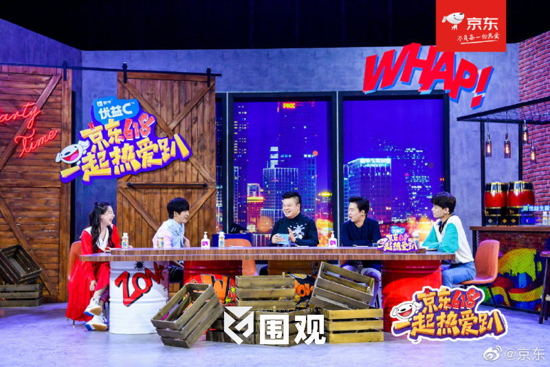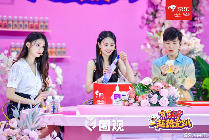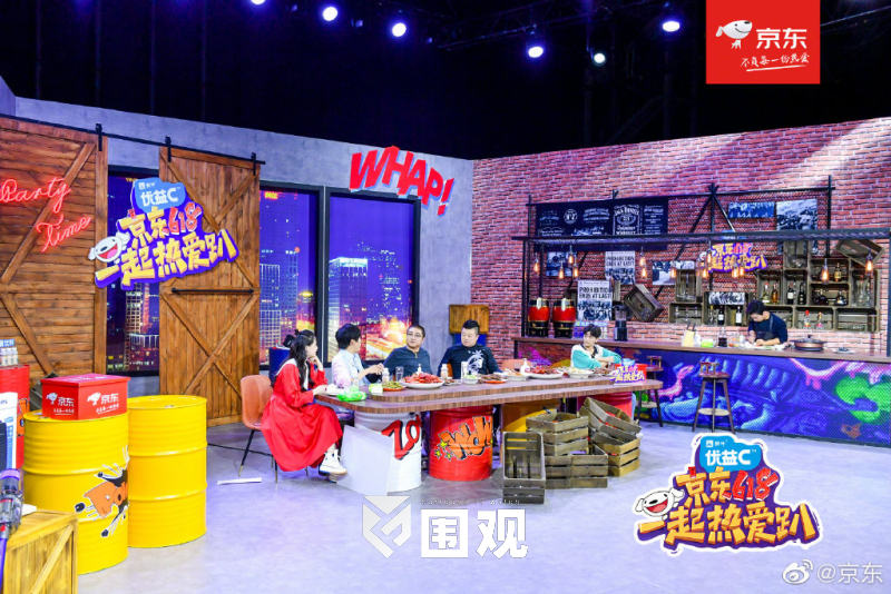 整个#京东618一起热爱趴#直播空间有米未传媒的马东、艳如晶和肖晓以及金靖参与直播,还有不同明星参与到不同直播间环节中,大张伟也在其中呀,毕竟京东超市代言人呀。