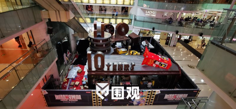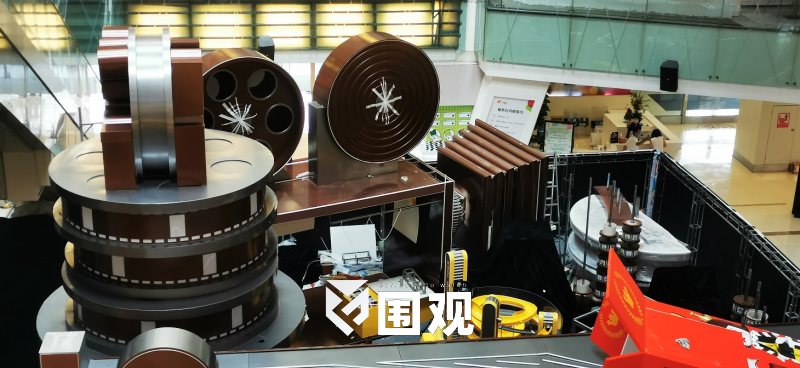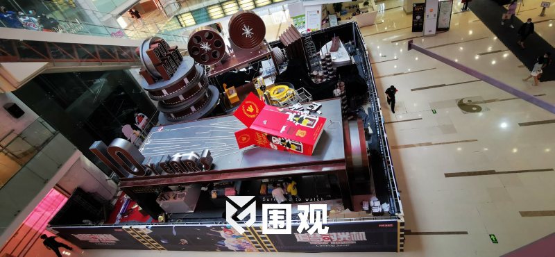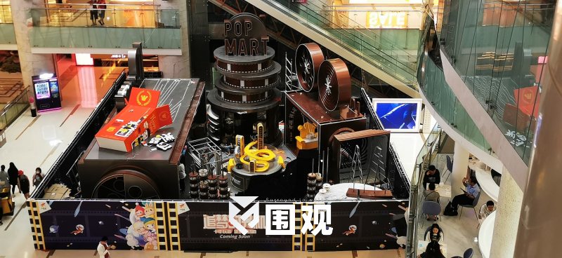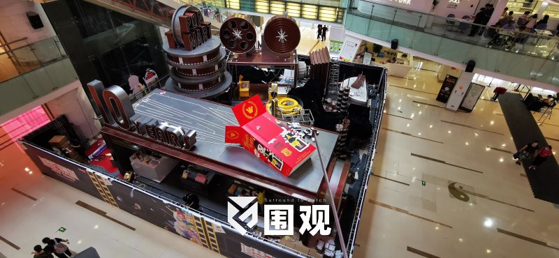现场俯视可以看到两个老式摄像机机器造型的展示和快闪售卖空间