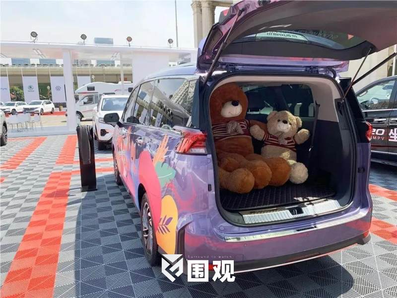 大通 展台的设计打破了以往商务、规矩的固有印象,散发出“萌趣”的气息。展台色调小清新,娃娃机已经就位,炫彩的G50后备箱里躺着几只大熊玩偶,盲猜它会成为人气王~