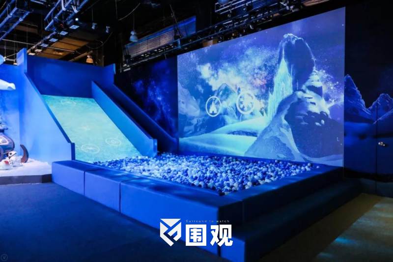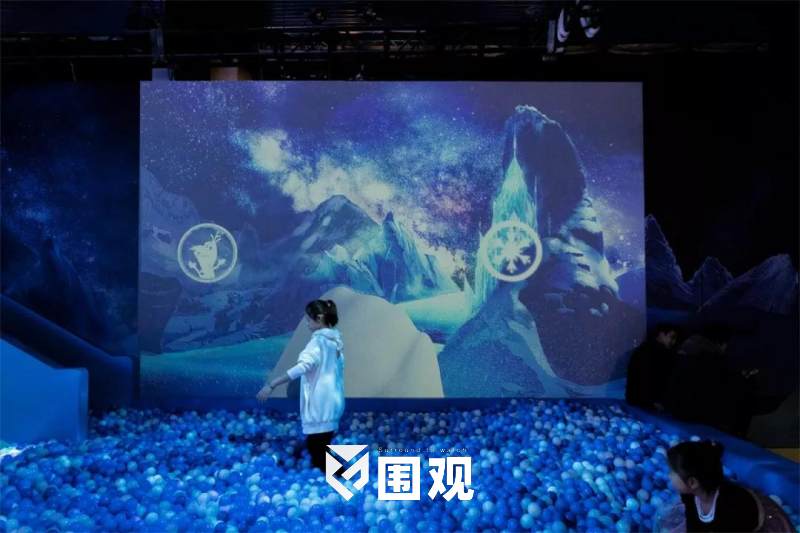 特展结合冰雪奇缘故事,将几个故事情节幻化为极具有趣的欢乐互动区。在冰雪森林区打造了大型互动滑滑梯,当你滑下滑梯,多媒体雪花会随你滑落。