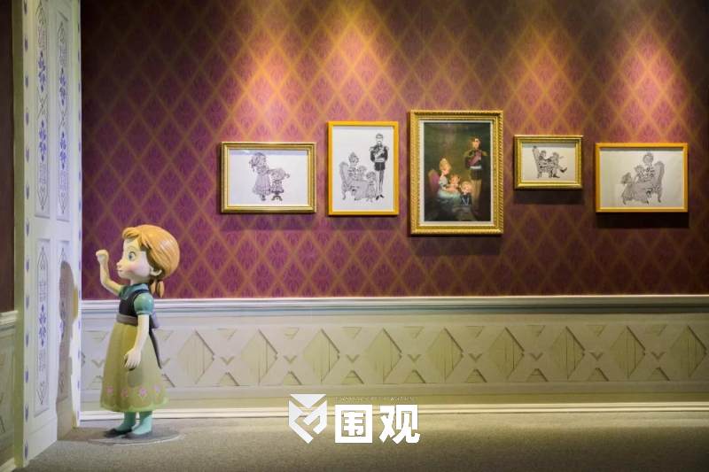 特展特意展出迪士尼动画工作室的200+幅珍贵画稿,内容包括人物设定,场景设定等。展览将画作垂挂在阿伦黛尔王宫的墙上,让你体验到在华丽的艺术馆里看展的feel。
