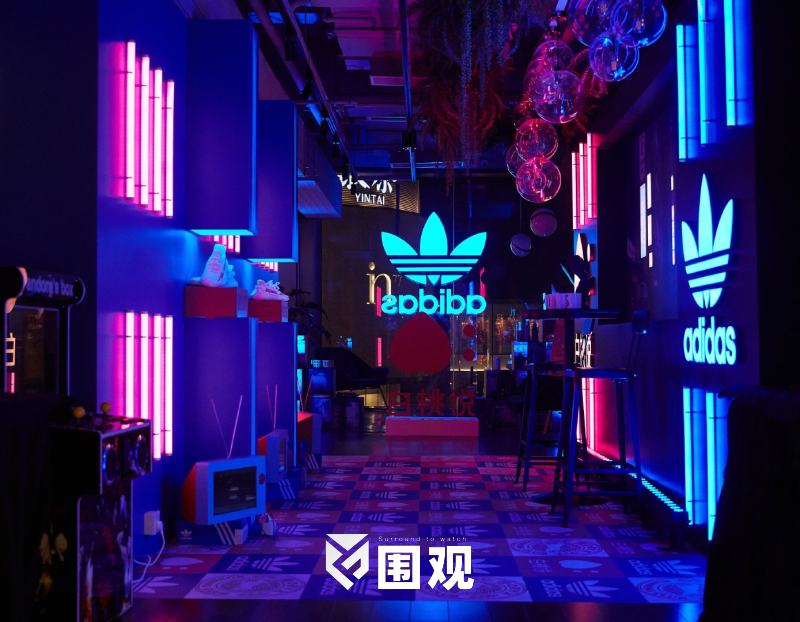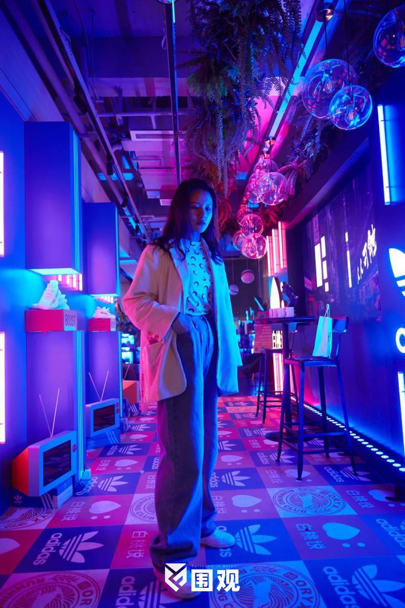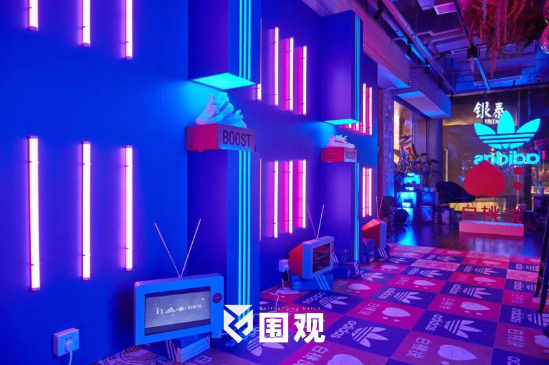 Adidas杭州店,充满光感的蒸汽波城市质感的街拍大片!马里奥游戏机,直接上手挑战最高分!最重要的是挑战游戏就有机会获得(独家)合作款yeezy鞋(白桃说定制款yeezy 350 v2 triple white 1双)!