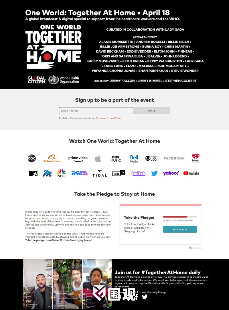 去看 https://www.globalcitizen.org/en/connect/togetherathome/ 页面信息