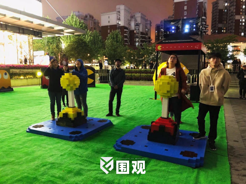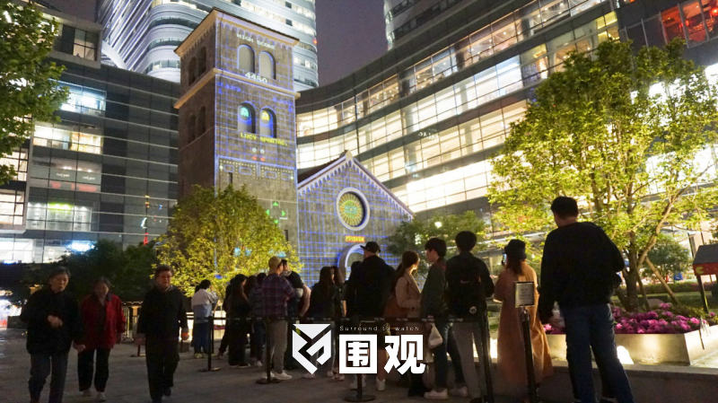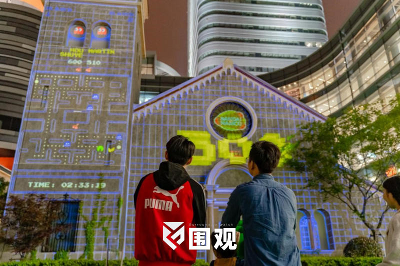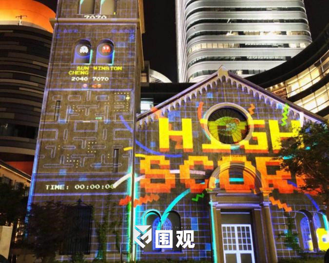 万代南梦宫包下上海长宁来福士钟楼的一整面墙,做成互动投影游戏,点亮你“万众瞩目”的游戏时刻。