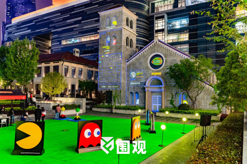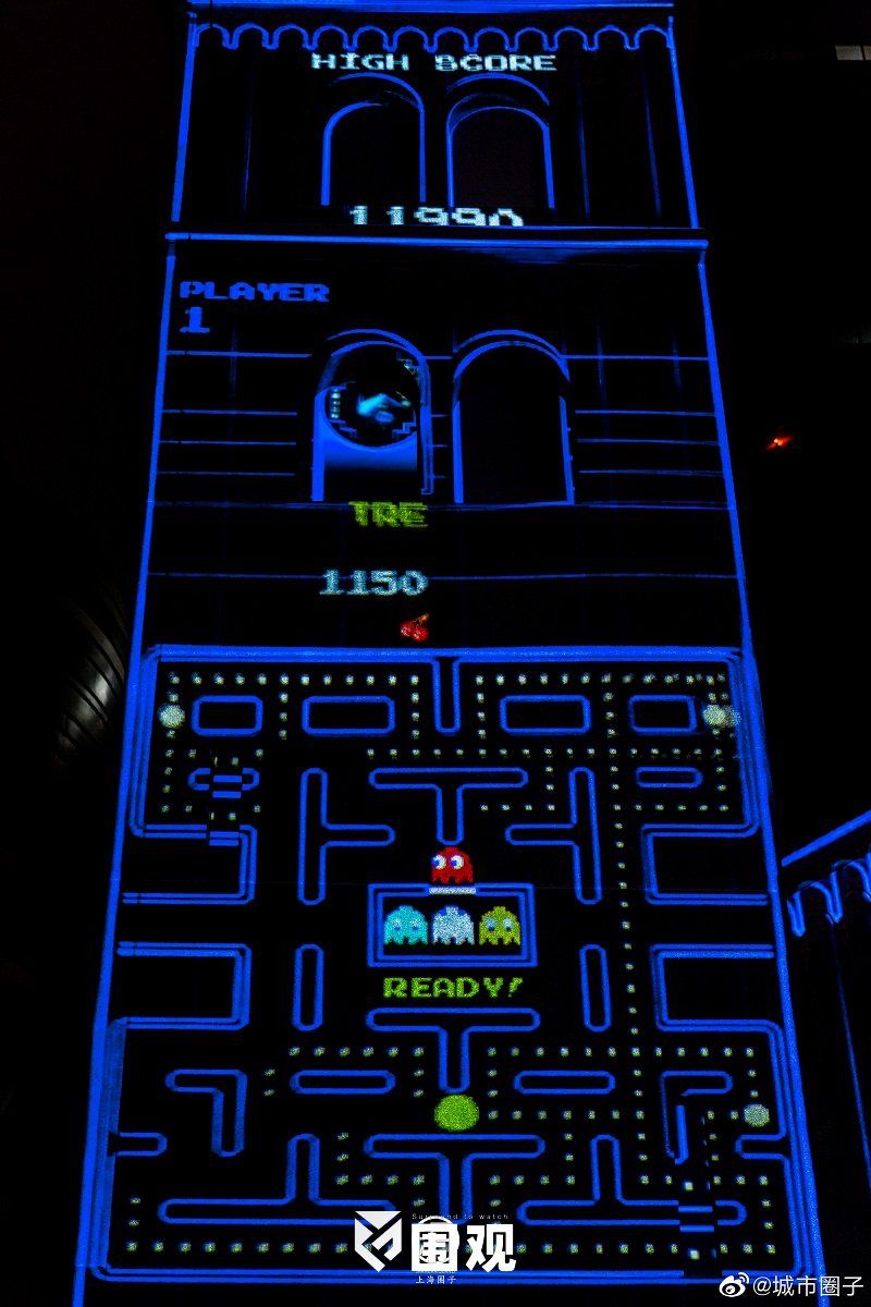 万代南梦宫中国将“吃豆人”搬上了长宁来福士钟楼的外墙,用互动投影邀各位参与者来一场万众瞩目的钟楼大作战!