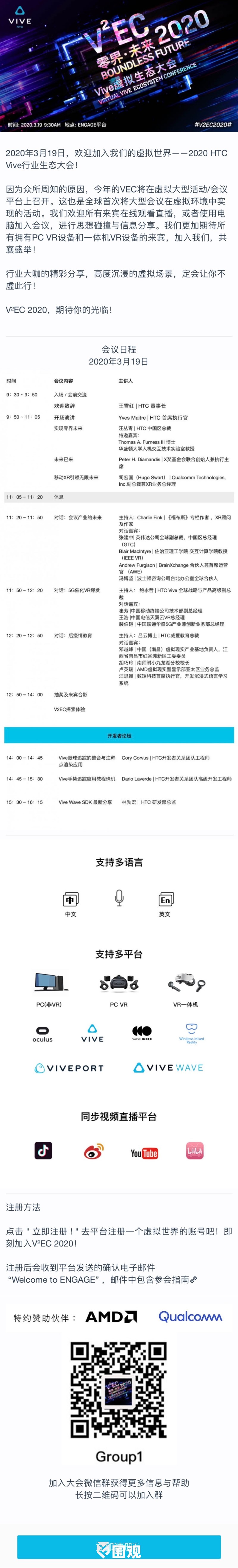 2020年3月19日,全球智能移动设备与沉浸式科技的创新领袖HTC于今日举办首场以零界未来为主题的VIVE虚拟生态大会(VEC2020),以完全虚拟的全交互形式取代现实会议。