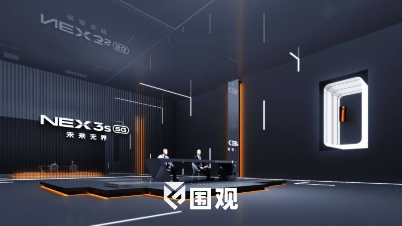 以几何调性打造空间感,体现生活与科技相融合的场景,引人深思,营造专属NEX调性的NEX SPACE。